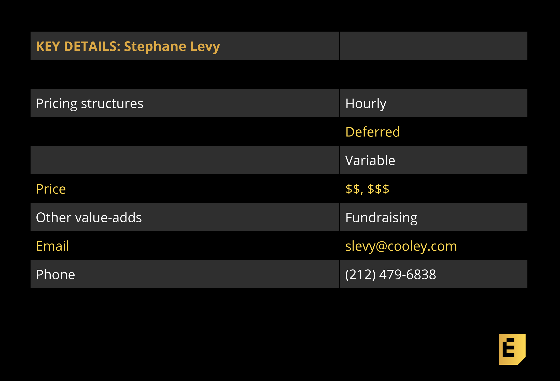 “Stephane has always been a source of sound advice that makes clear what the risks are and plainly interprets documents in terms of friendliness to the company, founders, or other parties. But what makes Stephane so great to work with is his focus on his client’s success, which manifests in humility, efficiency, and lack of greed. Stephane is always open to questions and feedback. Where Stephane thinks it would be more efficient to go out of house to a specialty firm (e.g. immigration or unique trade matters) he is happy to do so, and will make introductions or even facilitate an introductory call. Stephane is also sensitive to avoiding surprises for clients when it comes to billing. Even when working with other partners at Cooley, Stephane takes charge of our success with the firm and will review bills and reach out to ensure that project costs align with our expectations.” — Jason Green, Brooklyn, New York City, cofounder and CEO, Edenworks