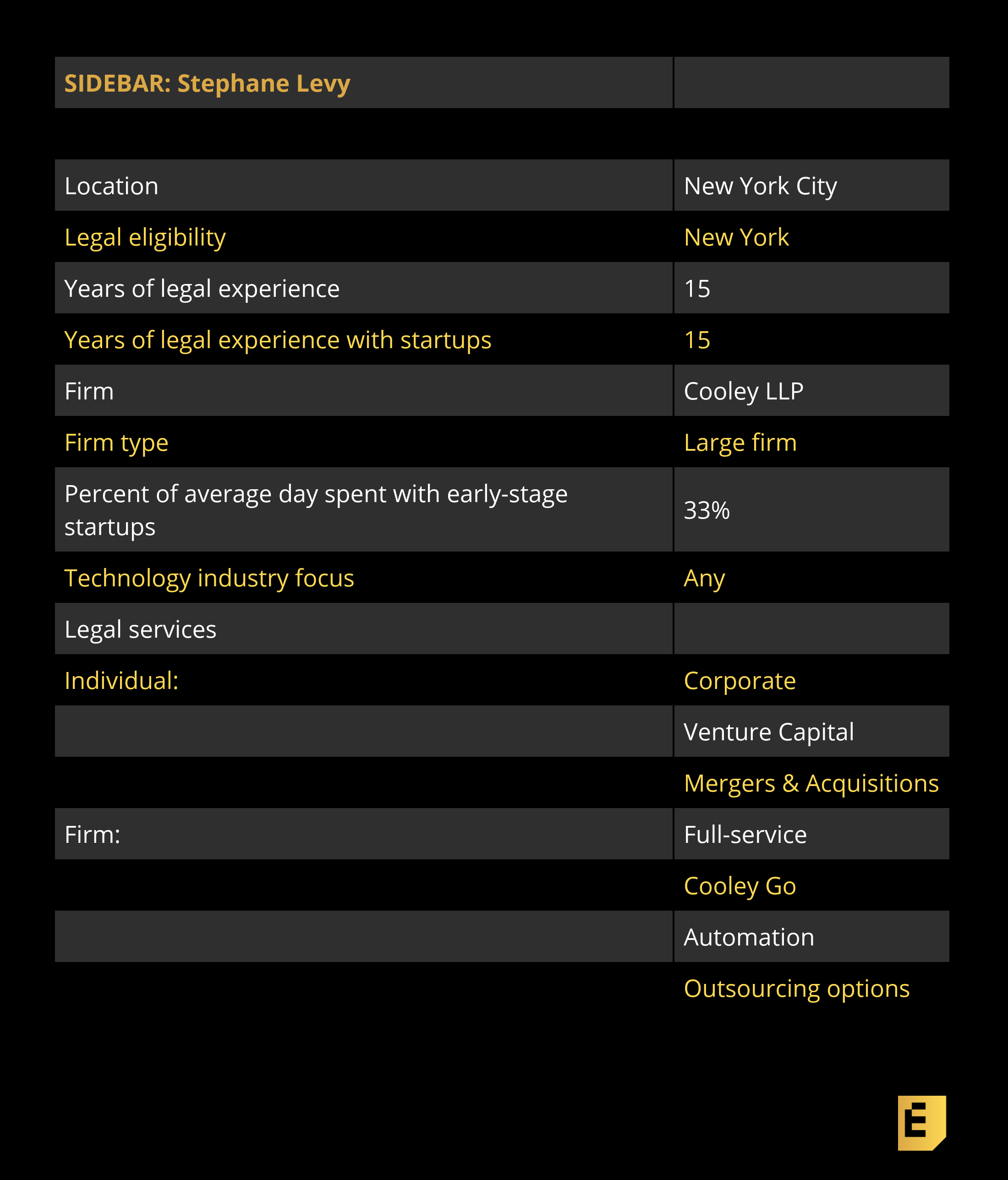 Stephane Levy got his start in the days of Silicon Alley almost two decades ago, and built up his practice with New York startups and beyond through all the ups and downs since then.