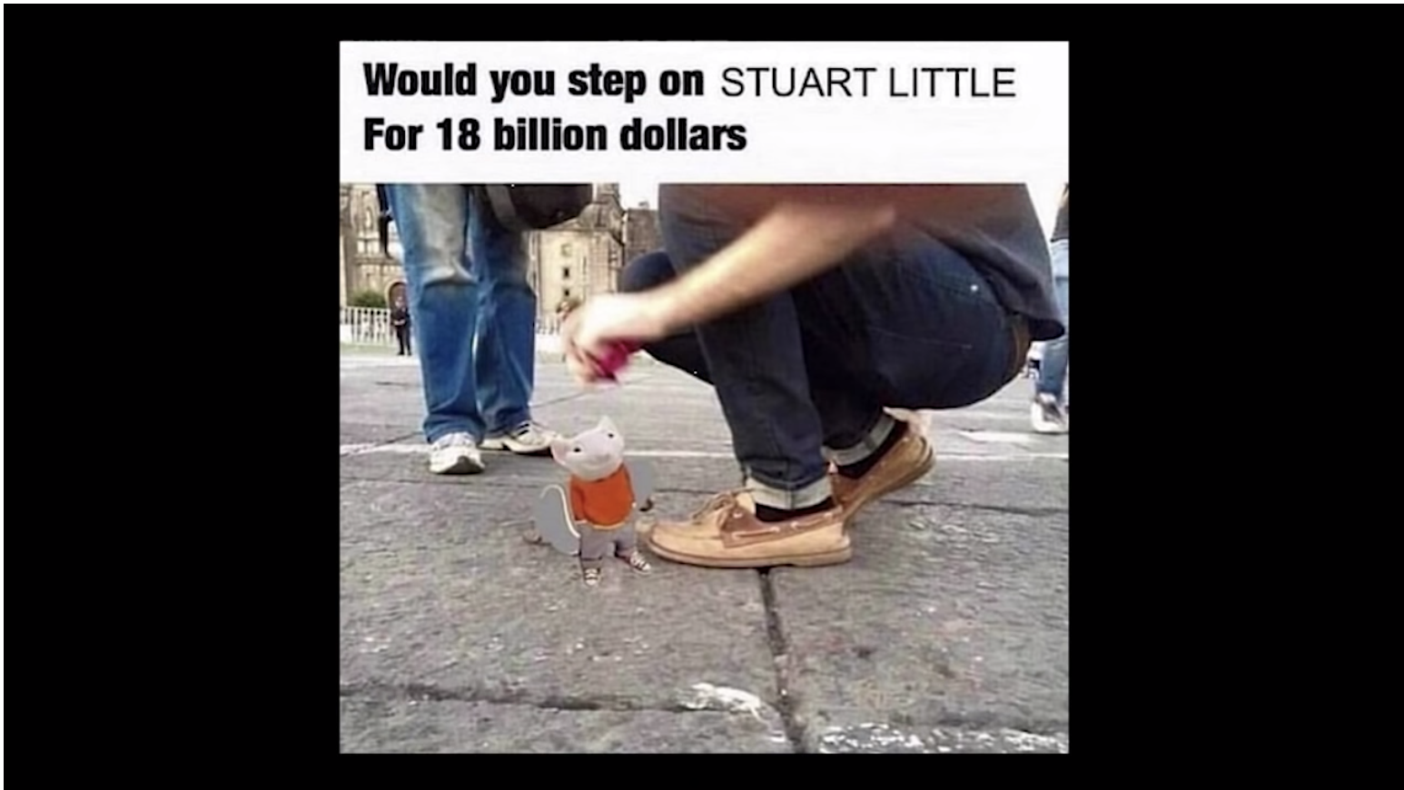 During the segment, Musk and Roiland rate various memes, like the one pictured below. The pair provide commentary and funny quips.