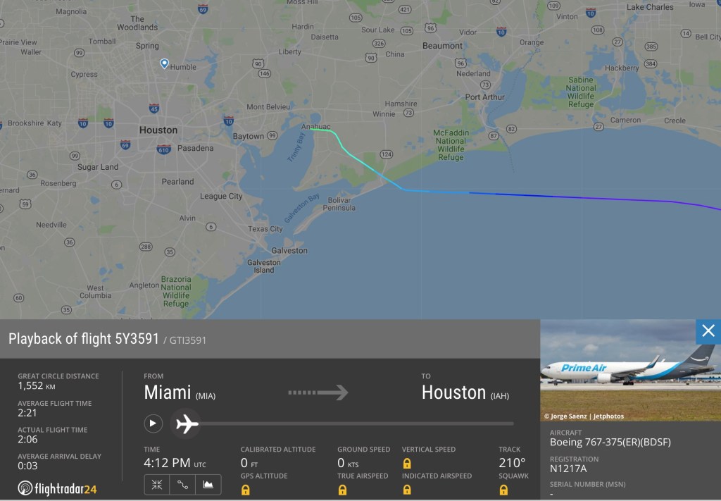 “This is to confirm that an Atlas Air 767 cargo aircraft Flight No. 3591 operating from Miami to Houston has been involved in an accident this afternoon,” reads a statement from Atlas. “We understand the aircraft went down near the city of Anahuac, Texas, in the Trinity Bay. We can confirm there were three people on board the aircraft. Those people and their family members are our top priority at this time. Atlas Air is cooperating fully with the FAA and NTSB. We will update as additional information becomes available.”