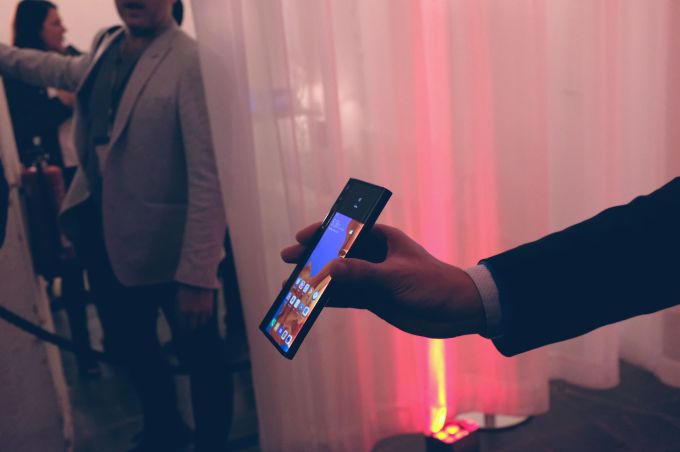 It is, of course, a bit of a wild west when it comes to form factors for the burgeoning foldable space. In a quick, behind the scenes briefing ahead of today’s press conference at MWC, we were given the opportunity to see the handset in action. It was, admittedly, a little more rushed than we’d like, involving no actual hands on time with the product — it was more of a stand behind this rope and snap off a couple of photos situation.