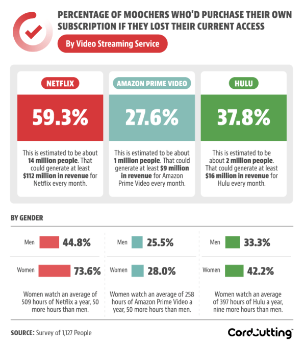 The full study offers other details on cord-cutting trends, including breakdowns by gender and details on who accounts are mooched from, among other things.