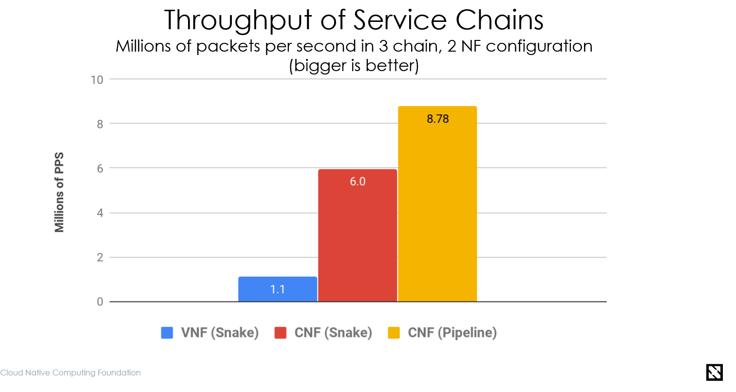 At MWC, the CNCF launched its testbed for comparing the performance of virtual network functions on OpenStack and what the CNCF calls cloud-native network functions, using Kubernetes (with the help of bare-metal host Packet). The project’s results — at least so far — show that the cloud-native container-based stack can handle far more network functions per second than the competing OpenStack code.