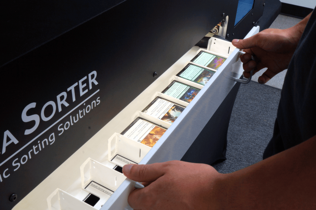 The machine is able to sort by a bunch of different criteria, be it alphabetically, by the set a card is from or by its resale value (as pulled from TCGPlayer). Want a big pile of all of the cards worth more than $1? It can do that. If you need them sorted other ways, the company is open to helping with custom sorting logic.