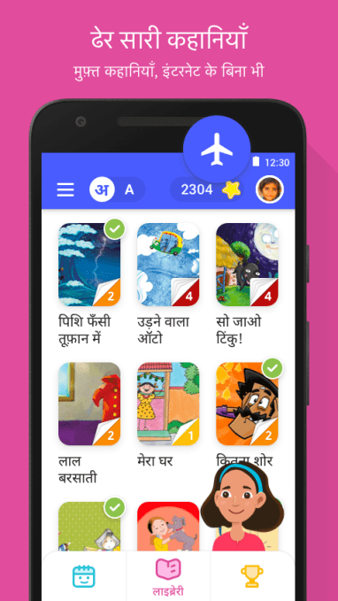 Included in the app is a reading buddy, “Diya,” who encourages and corrects the child when they read aloud. As kids read, Diya can listen and respond with feedback. (Google notes all personal information remains on-device to protect kids’ privacy.) Diya can also read the text to the child and explain the meaning of English words. As children progress in the app, they’ll be presented with word games that win them in-app rewards and badges to motivate them.