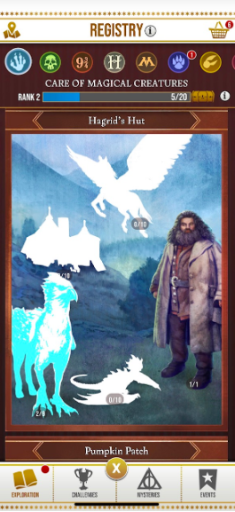 And every foundable is listed in a sort of sticker book you’ll fill in bit by bit as you encounter them. Free Buckbeak however many times and it’ll be fully filled in, giving you various bonuses and, perhaps more importantly, the ability to take AR photos with the creature or character in question.