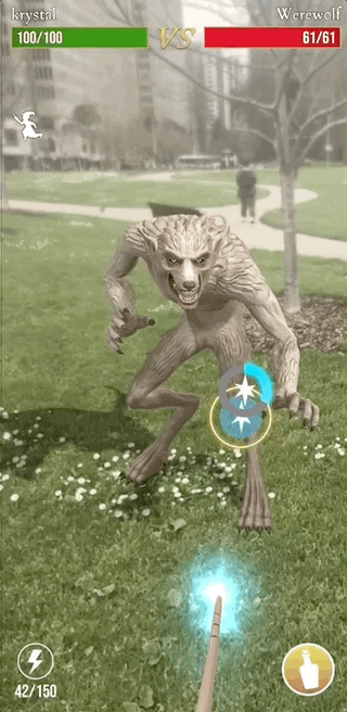 When you tap an encounter, you enter an AR minigame where you may, for instance, have to cast a spell to free Buckbeak the gryphon from a magical ball and chain, or defeat a monster threatening a character from the books.