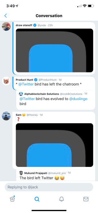 This is definitely a more subtle way to highlight the tweet’s importance to the conversation. It’s also one that could be overlooked — especially in the darker themed Night Mode where the gray line doesn’t offer as much contrast with the dark background.