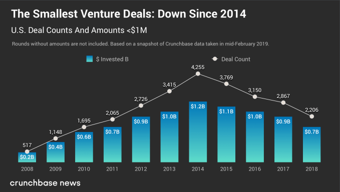 Since 2014 we have seen mostly double-digit declines in less than $1 million rounds each year – a strong pivot from 2008-2014 when we saw double-digit growth.