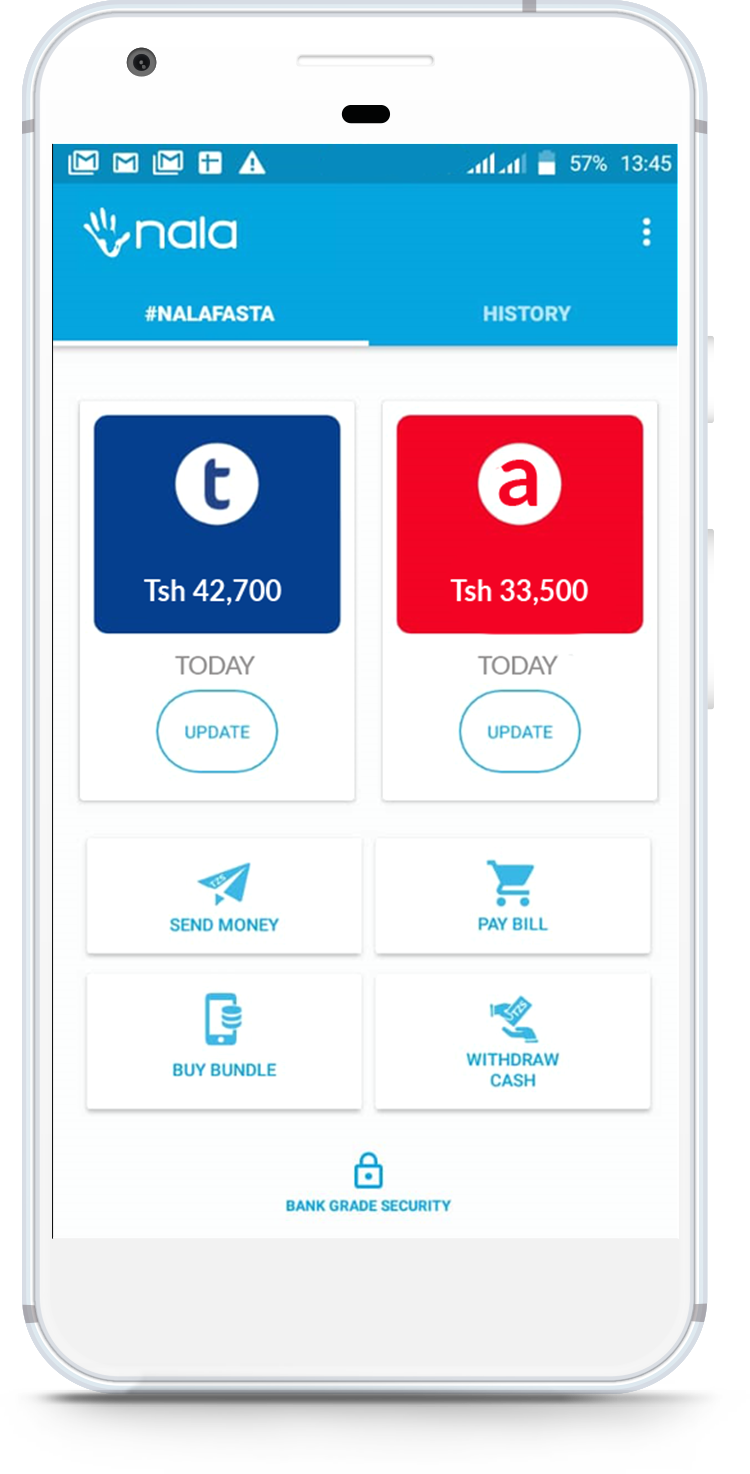While at least a hundred million Africans hold mobile money accounts, the process of transacting over the services is difficult, so Nala made an application that acts as an interface on top of the unstructured supplementary service data layer to make money transfers and payments much easier.