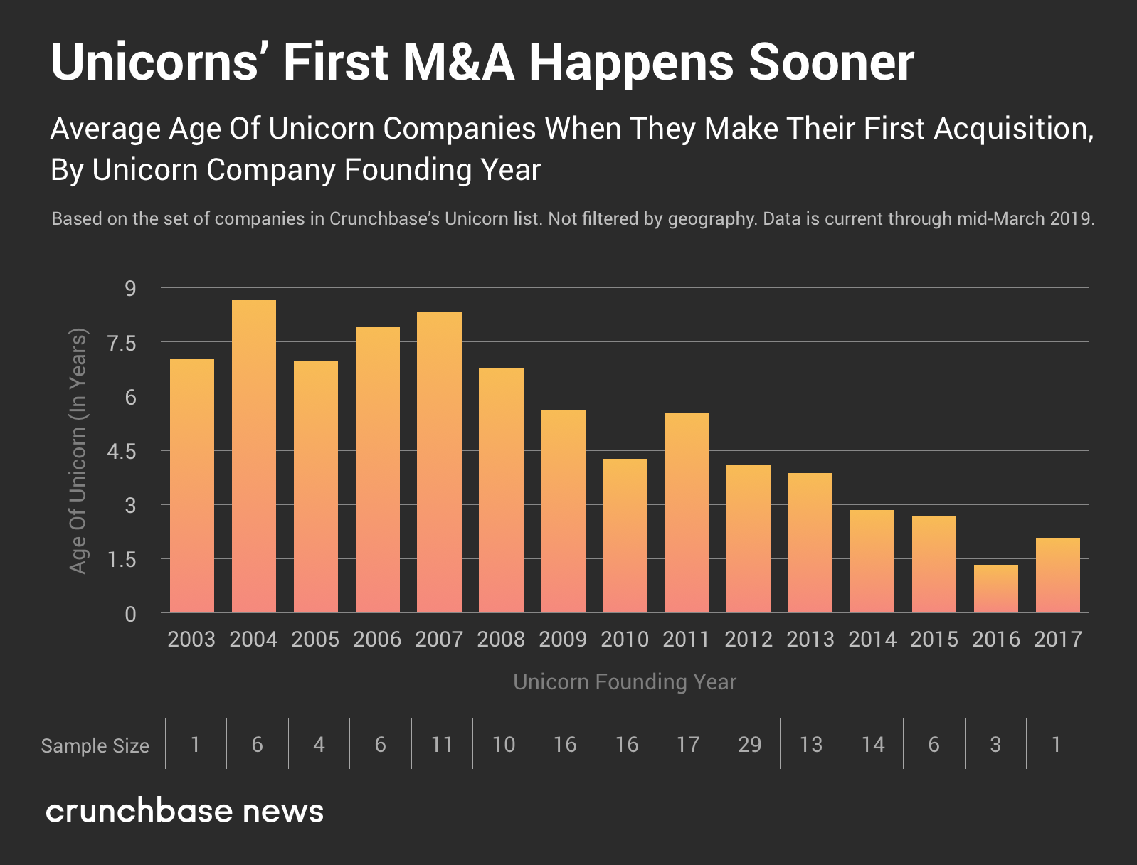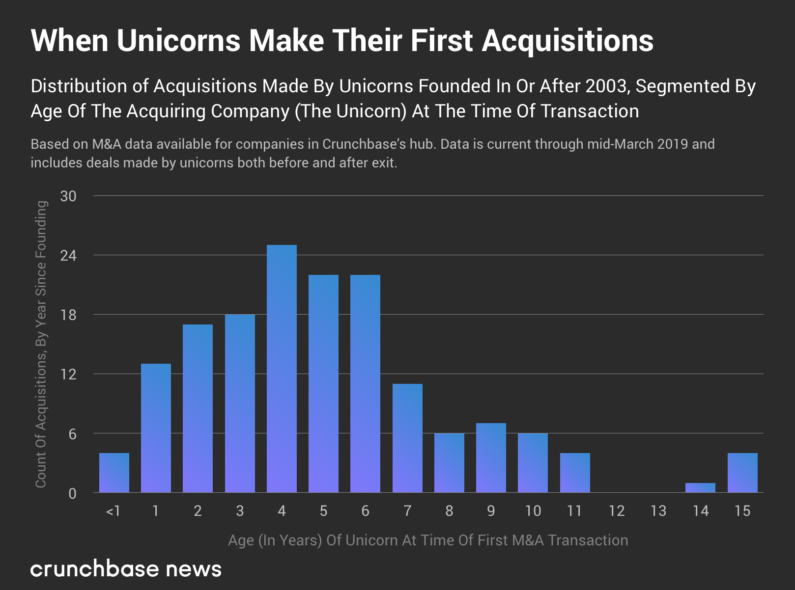 This suggests that younger unicorns are increasingly using M&A transactions as a way to accelerate their path to massive market power.
