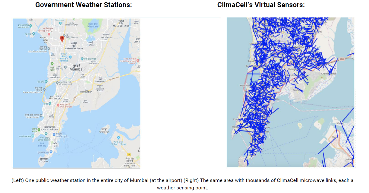 What’s more complex is that ClimaCell has also developed the technology to gather data from how atmospheric conditions impact the signal propagation between cell phones and their base stations. And to take this one step further — and beyond the ground level — it has also figured out how to gather similar data from satellite-to-ground microwave signals.