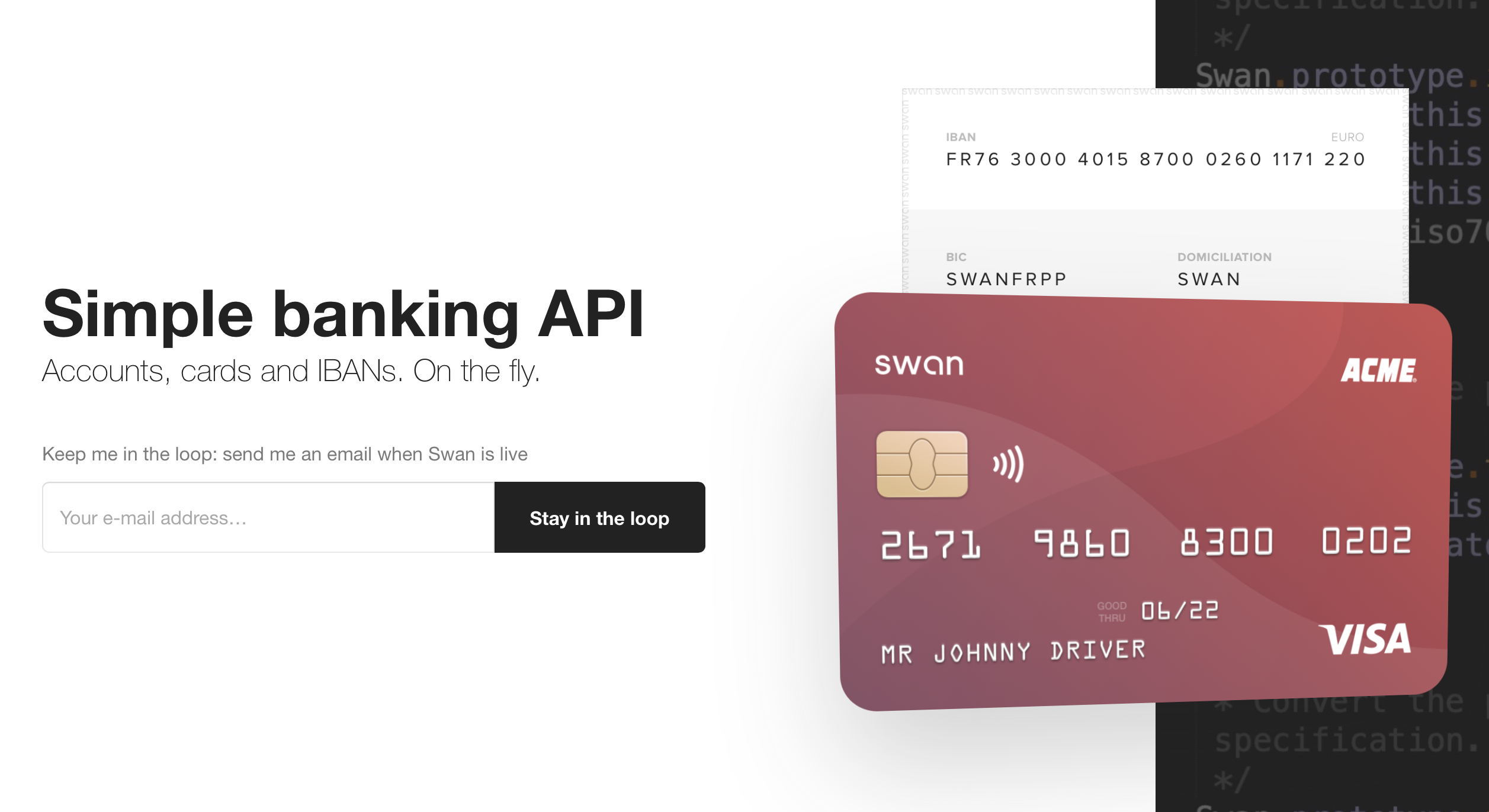 Details are still thin with Swan. It’s a fintech company that will let you add a banking layer to your service. The company says that you’ll be able to generate accounts, cards and IBANs on the fly.