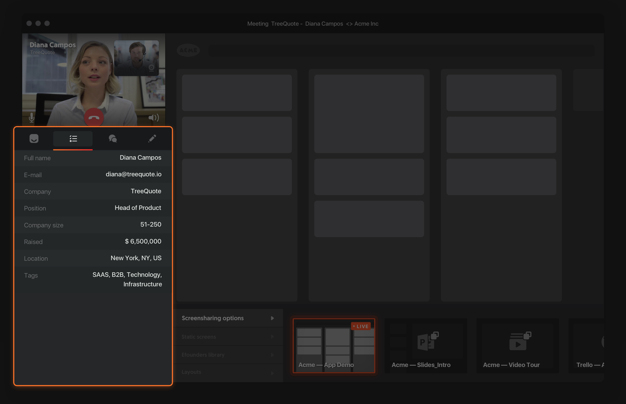 It starts with a video call service that works in your browser. Your future client can just click to join a call. Sales reps can see CRM information right from their Bonjour interface. They can also start a screensharing session to show some slides or demo an app.