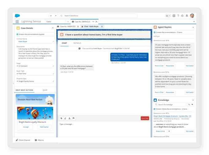 The goal of any customer service interaction is to get the customer answers as quickly as possible. Many users opt to use chat over phone, and Salesforce has added some AI features to help customer service agents get answers more quickly in the chat interface. (The company hinted that phone customer service enhancements are coming.)