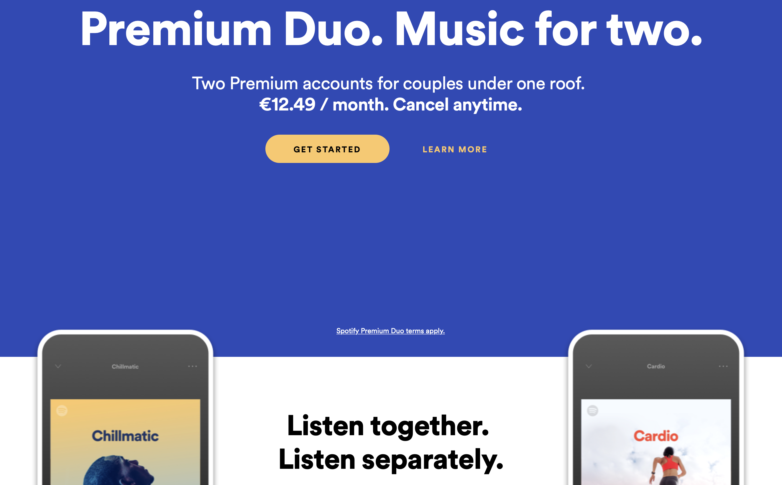 With Spotify Duo, the company would introduce a new price point at €12.49 per month — it would likely cost $12.49 in the U.S. and £12.49 in the U.K., but it’s only available in Ireland for now. The only requirement is that you need to live at the same address.