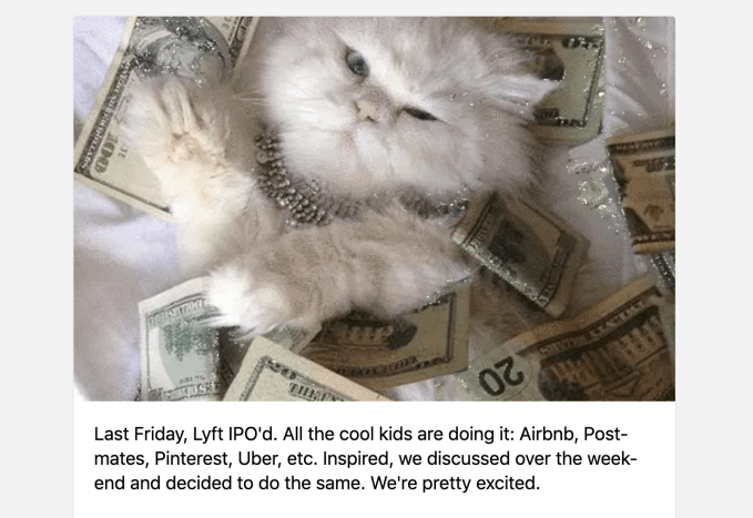 ProductHunt joked that it’s going public simply as a result of peer pressure. It also highlighted some of the April Fools’ pranks coming through on its own platform, including a SideDoor into college admission and a monstrous USB hub.