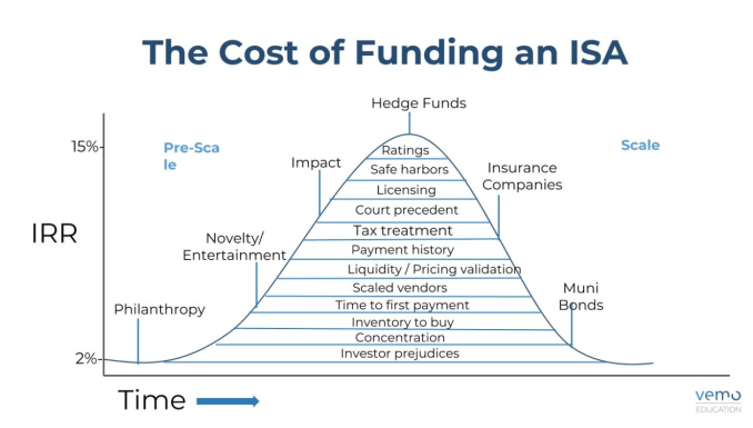 ISAs are higher risk when spread across a smaller number of people and when there’s little track record and the regulatory risk of not yet knowing what law may pass on this. The whole market right now is a few thousand students not millions of students. The capital going into this currently is from philanthropies, impact investment funds, family offices, and student lenders who are hedging in case it disrupts them. I know a couple small hedge funds in it specifically because of the risk but traditional finance is still just watching.