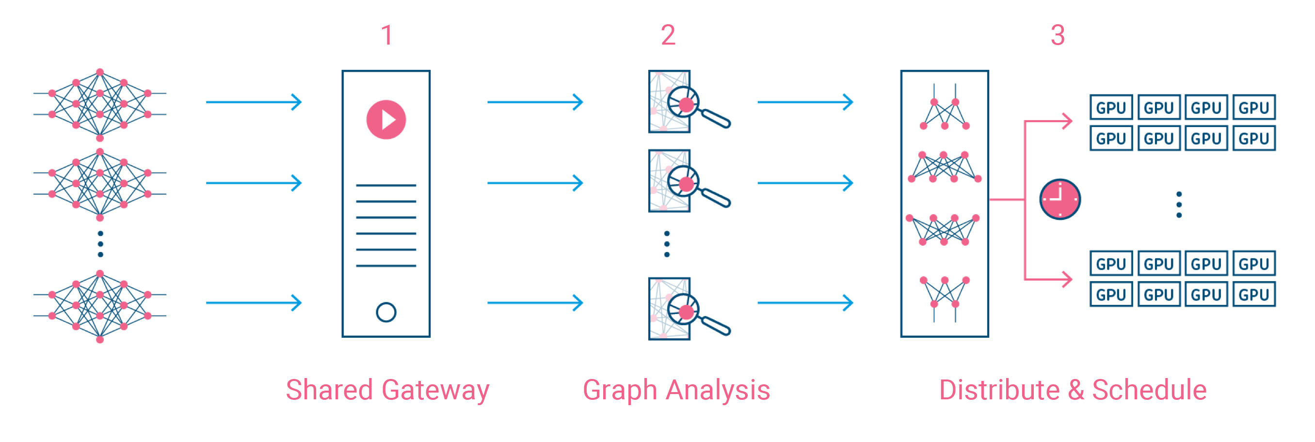 That’s only one part of the company’s solution, though. In addition, the company’s tools also analyze the model in order to break it down into smaller models that can then run in parallel across these servers. With that, the service can understand how many resources a workload would need and what machines to best send the given workloads to. In doing this, the system takes into account everything from available compute resources to network bandwidth, as well as the data pipeline and size.