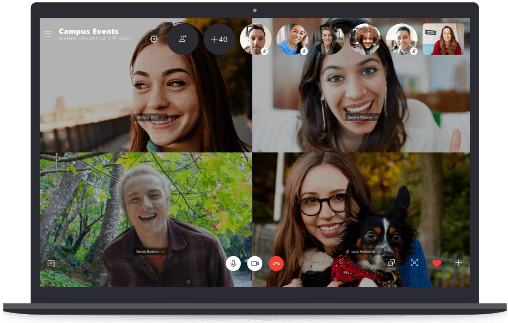 Skype also one-ups Facebook Messenger, which allows 50 people to join a chat but limits the screen to show only the speaker after more than a half-dozen people join in. On Skype, participants are shown in bubbles across the top of the screen and the end-user can choose whose feed they want to focus on in a multi-paned main window.