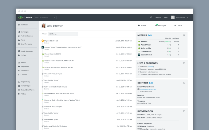 Michael Medici, a managing director at Summit Partners, who is joining the company board as part of this investment, says the company is a combination of product vision and technical expertise. “Klaviyo continues to change the playing field in commerce, allowing companies of all sizes to harness the power of data-driven customer engagement activity to grow sales – and the results are impressive,” he said in a statement.