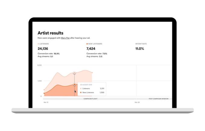 Spotify is launching new analytics tools to help artists and their teams better understand how well their ads are working. The company today says it’s rolling out new streaming conversion metrics that will show how Spotify listeners reacted to a particular ad campaign — whether they clicked through to listen, saved the music or added it to a playlist, for example.