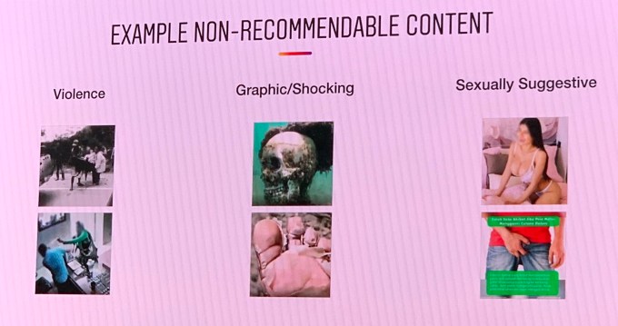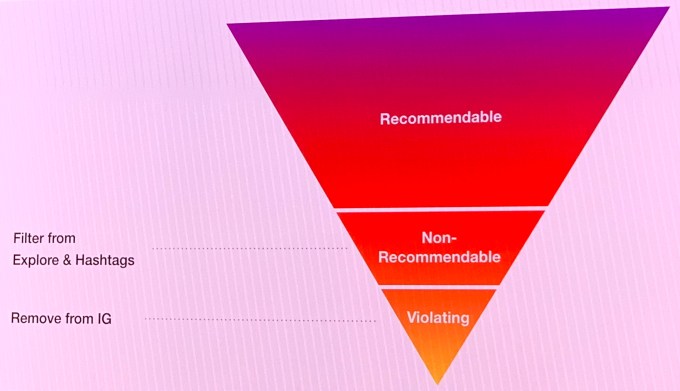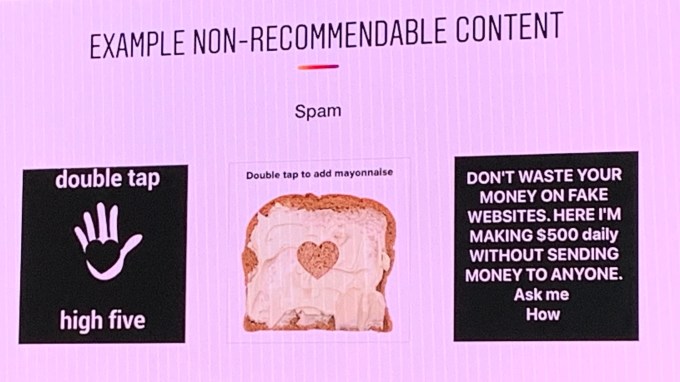 Creators currently have no guidelines about what constitutes borderline content — there’s nothing in Instagram’s rules or terms of service that even mention non-recommendable content or what qualifies. The only information Instagram has provided was what it shared at today’s event. The company specified that violent, graphic/shocking, sexually suggestive, misinformation and spam content can be deemed “non-recommendable” and therefore won’t appear on Explore or hashtag pages.