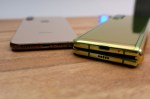 Unfolded, the device is surprisingly thin — a hair under the iPhone XS. Folded, it’s a bit beefier than two iPhones, owing to a gap between the displays. While the edges of the device come into contact when closed, they form a long, isosceles triangle, with a gap that increases as you move toward the middle.