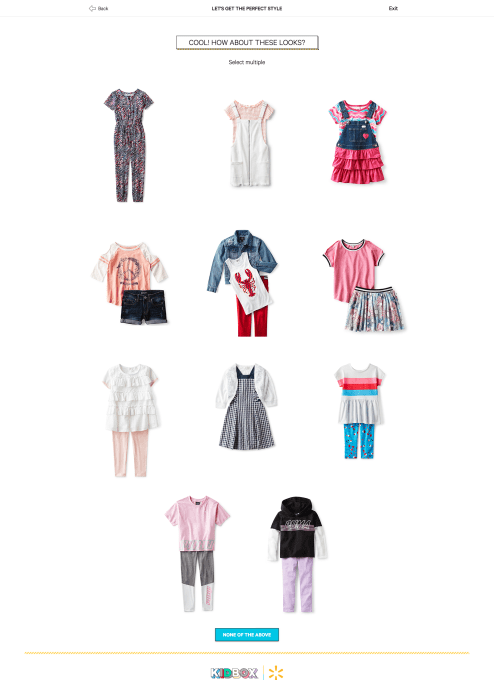 Walmart is getting into subscription-based fashion with today’s announcement of a partnership with Kidbox — a sort of “StitchFix for kids” where parents receive a personalized, curated box of children’s clothing on a seasonal basis. The deal will see Kidbox offered to Walmart.com’s online shoppers, where they can fill out a short style quiz, then receive their box of four to five fashion items for around $48 — or 50 percent off the retail prices of the bundled items.