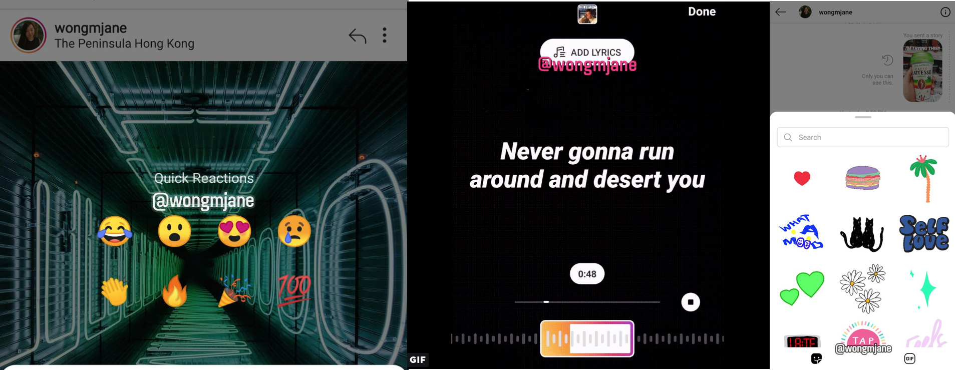 Meanwhile, Wong has also recently spotted several other Instagram prototypes lurking in its Android code. Those include chat thread stickers for Direct messages, augmented reality filters for Direct Video calls, simultaneous co-watching of recommended videos through Direct, karaoke-style lyrics that appear synced to soundtracks in Stories, emoji reactions to feed posts and a shopping bag for commerce.