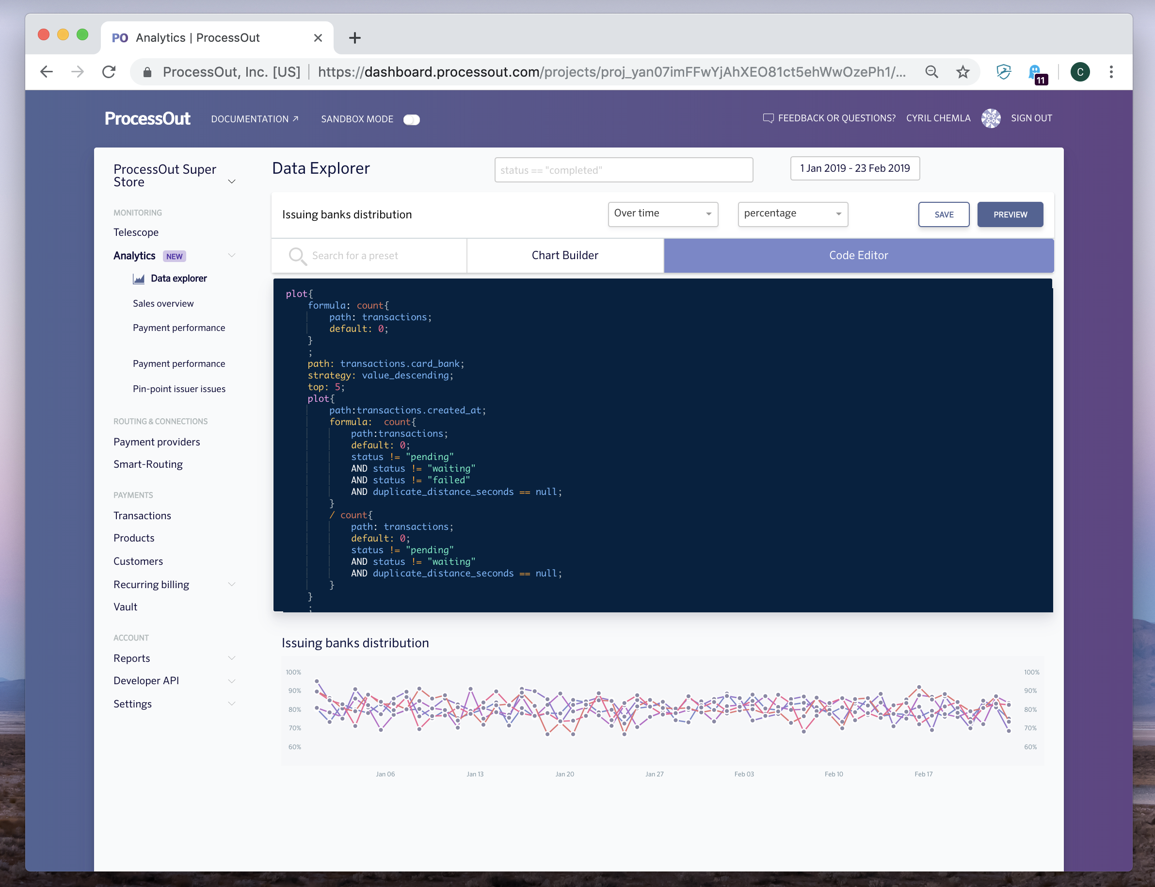 The company is adding new features to make it easier to get insights from your payment data. You can now customize your data visualization dashboards with a custom scripting language called ProcessOut Lang. This way, if you have an internal payment team, they can spot issues more easily.