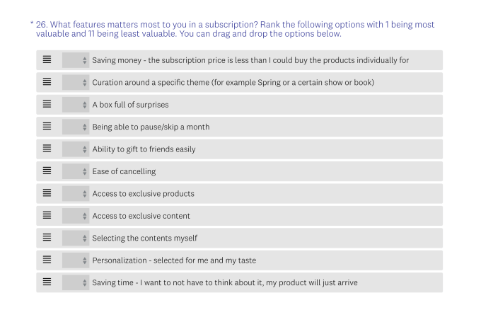 The survey also asked for feedback about how the books would be paired with the other items. Members were asked if they would prefer the monthly book club selection or themed boxes like “favorite books,” “classics” or “summer reads,” for example.