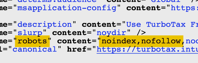 To effectively bury its free filing service, TurboTax included a snippet of code in the page’s robots.txt file instructing search engines not to index it. The code was spotted by a Twitter user Larissa Williams and Redditor ethan1el.