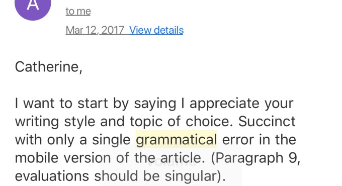 So, I think the intention with emails that start by criticizing past writing is to point out how closely the sender has been reading your work. But, if you also read my piece on how to pitch your startup to a tech journalist, then you know that relationship-building is one of the most important components of working with the media. Don’t start that relationship with a criticism.
