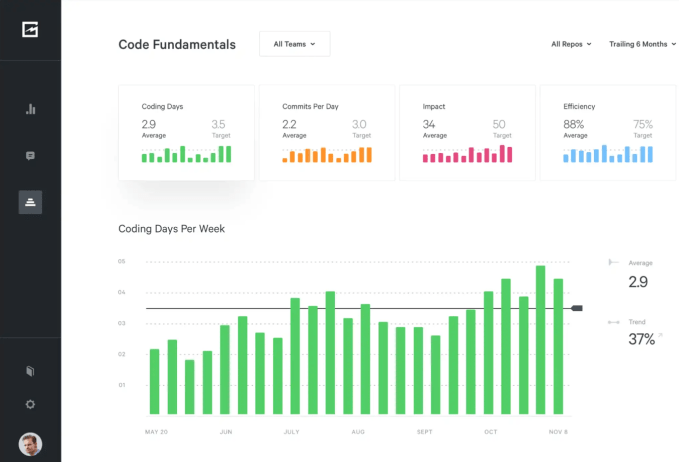 GitPrime is like an analytics dashboard for code projects. It watches your team’s code repositories on services like GitHub or Bitbucket, tracking things like user-by-user code commits over time, ticket activity and how different team members tackle things like pull requests. The idea is that by providing this data in a visual/at-a-glance way, it helps identify bottlenecks and highlight where your teams are most efficient.
