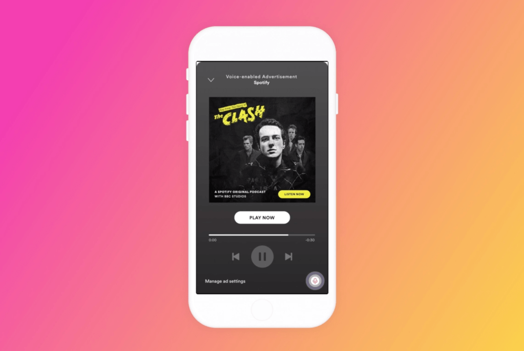 Some of the first voice ads being tested come from Unilever’s Axe and Spotify Studios. One ad, starting today, will direct users to the Spotify Original podcast, Stay Free: The Story of the Clash. Another will promote a branded playlist on Spotify related to a Unilever Axe ad campaign later this month.