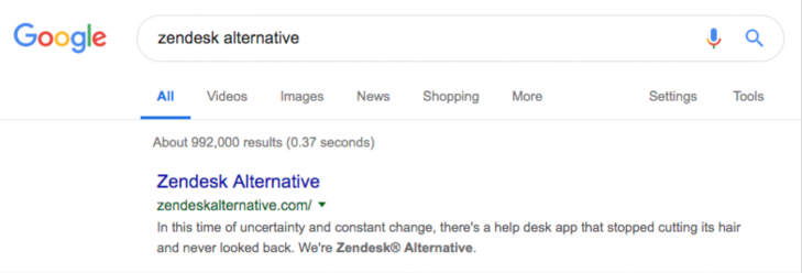 An exact-match domain name for Zendesk alternative is what you’ll probably see: