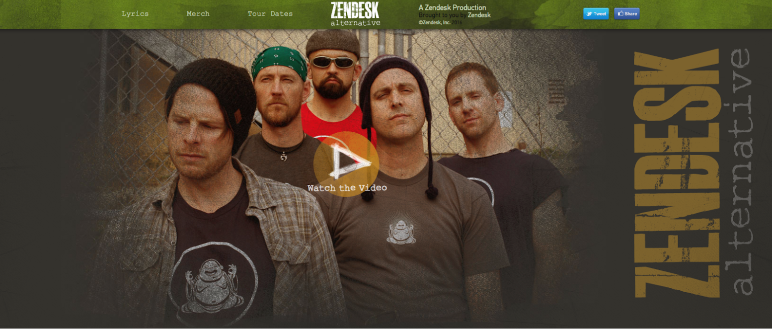 The site introduces you to Zendesk Alternative – an alternative rock band (see what they did there?) made up of actual Zendesk staff members.