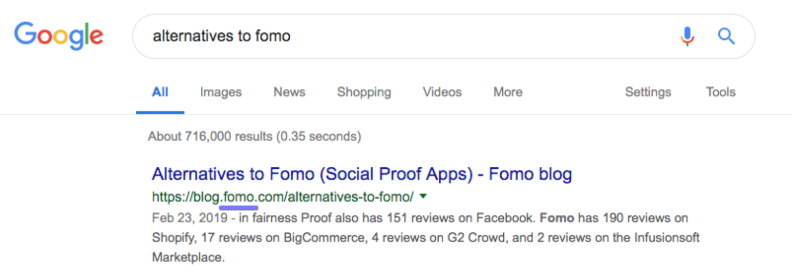 Then, when people are looking for alternatives to large brands in your space, you have the opportunity to get recognized thanks to the search traffic they already pick up.