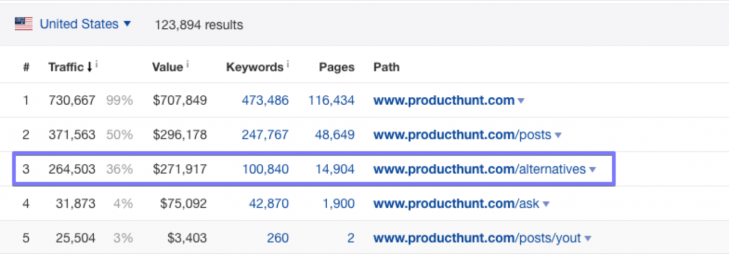They’ve grown search traffic dramatically by ranking for ‘alternatives’-related search terms for a lot of different products.