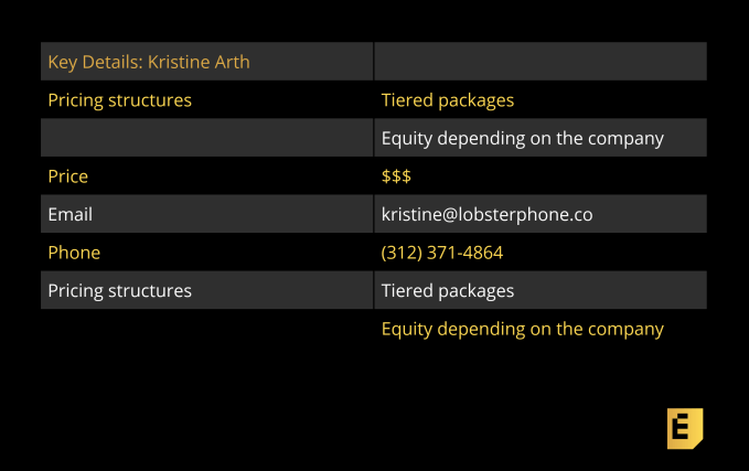 Kristine Arth: Lobster Phone is about creating iconic brands with bold personality. If they want to be safe, or be something that they’ve seen that makes them comfortable, it’s probably not going to be with me and I would say that a lot of entrepreneurs feel more comfortable when they’ve found a brand that looks like something that they’ve seen before.