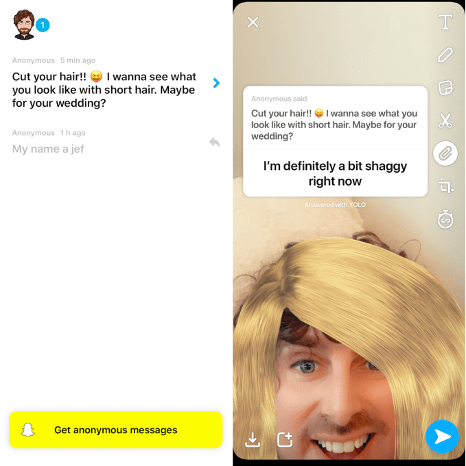 There’s also the threat of Snapchat just building similar anonymous Q&A functionality into its own app. But that’s the risk of building atop any platform that otherwise massively reduces an app’s development and marketing costs. This will become a powerful case study that will surely draw tons of developers to Snapchat’s platform. With so much of YOLO powered by Snap Kit, and it all just being an experiment, Henrion won’t lose much if his app dies and he moves on to the next idea.
