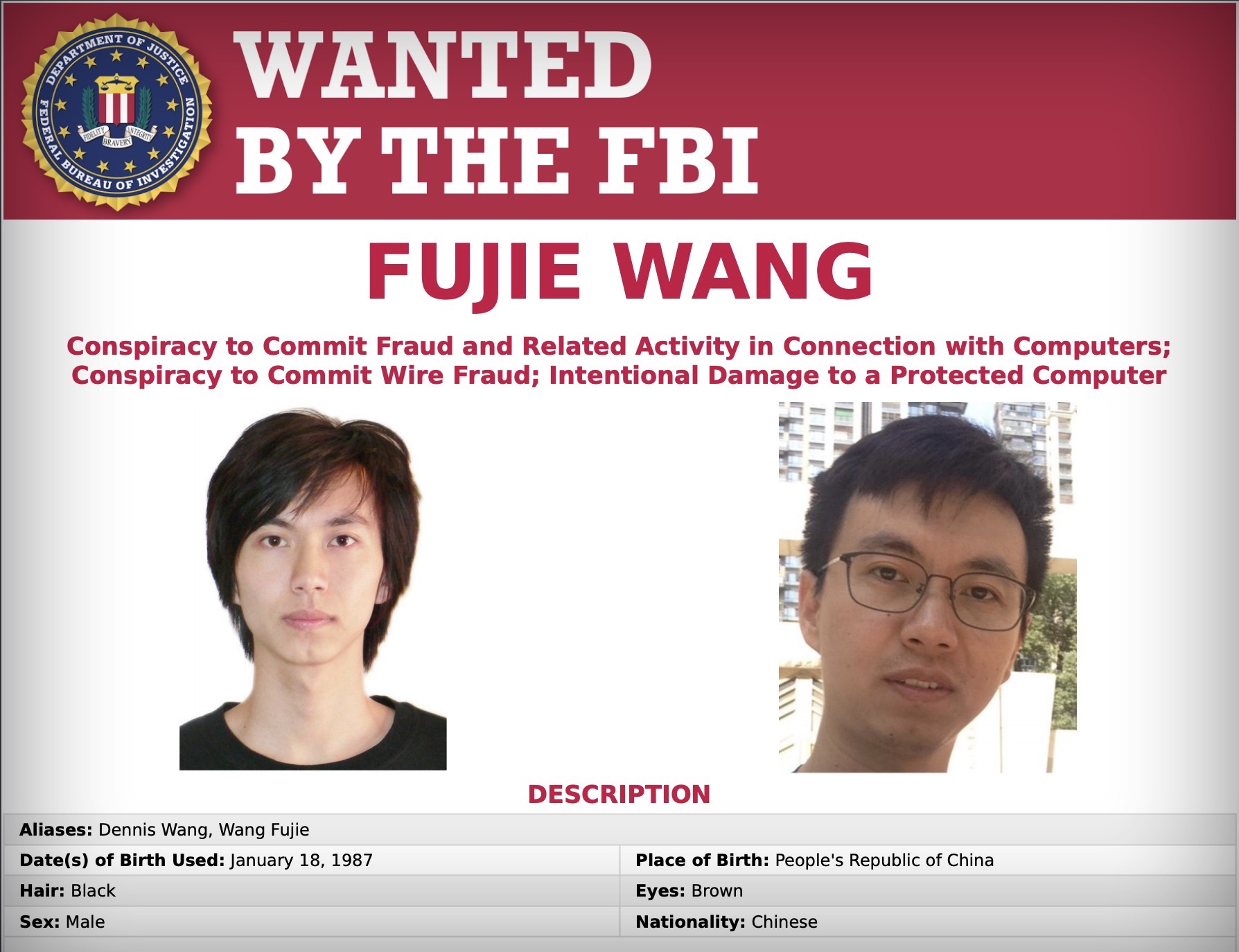 Fujie Wang, 32, and other unnamed members of a China-based hacking group, are charged with four counts of conspiracy to commit fraud, identity theft and computer hacking.