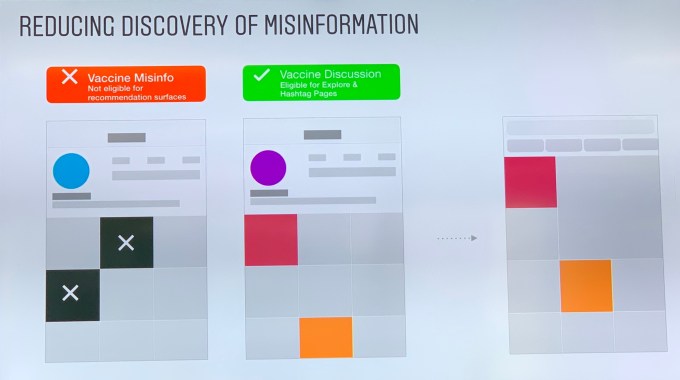 On the misinformation front, Instagram will begin blocking vaccine-related hashtag pages when content surfaced on a hashtag page features a large proportion of verifiably false content about vaccines. If there is some violating content, but under that threshold, Instagram will lock a hashtag into a “Top-only” post, where Recent posts won’t show up, to decrease visibility of problematic content. Instagram says that it will test this approach and expand it to other problematic content genres if it works. Instagram will also be surfacing educational information via a pop-up to people who search for vaccine content, similar to what it’s used in the past for self-harm and opioid content.