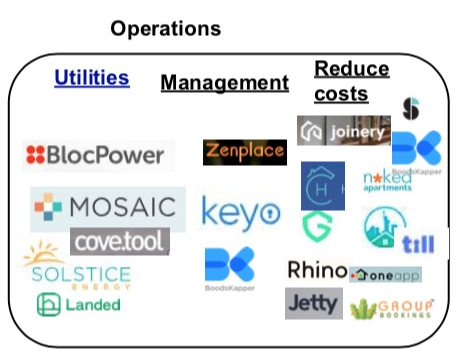 Part of a thriving and competitive ecosystem of property technology (“proptech”) and real estate technology (“retech”), the following categories deserve (and have) maps of their own. To identify those that may reduce operational costs, I highlight key examples that may also filter savings to end users, such as renters and homeowners.