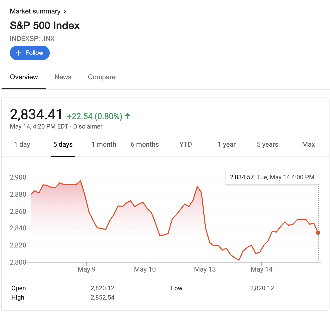 Even the modest gains from today’s trading don’t recoup all of the losses the markets have suffered since the new round of tit for tat tariffs began when the U.S. walked away from negotiations and imposed new duties on goods.