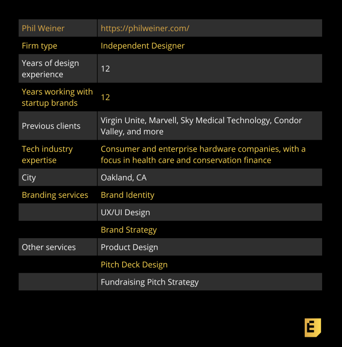 As a former entrepreneur turned independent designer, Phil Weiner gets the startup life. He often describes himself as a second co-founder for his clients, unafraid of 2AM phone calls and prepping pitch decks for investors. He’s a “full stack” creative director based in Oakland, CA with a passion for tackling cultural tension. Learn more about why design runs in his blood, his branding philosophy, and more.