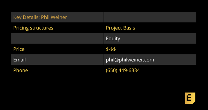 Phil Weiner: Typically, yes. A lot of the companies that I work with nowadays are not seen as an expense, but an investment. They say I’m acting like their second co-founder. If they’re worried about a pitch, a product launch, or the direction the company’s going, I’m on the phone with them if it’s midnight or 2AM. I kind of become a coach, like a therapist or a second part of the brain. When they have no one else to talk to, they’re talking to me. Naturally, I can’t scale my time as much as I can scale a product so I have to be very selective about who I’m working with and whether we can build a long term partnership.