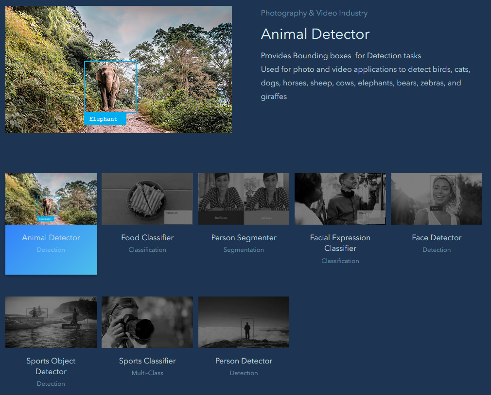 There are a bunch of pre-trained models, running the gamut from cat detectors to gesture identification. Here’s a sampling of what’s available: