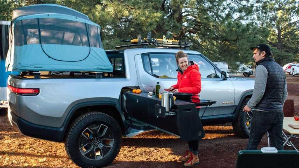 So far Rivian has shown its products in the backwoods, running trails and sitting next to campfires. The people in the commercials are on an adventure, wearing coats by The North Face and sleeping in REI tents. With the kitchen from today’s announcements, they can pull a kitchen out of their pickup and make some coffee.